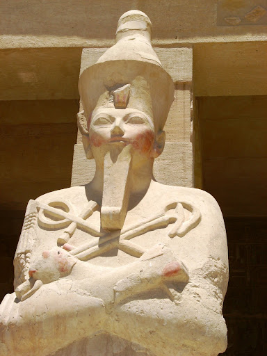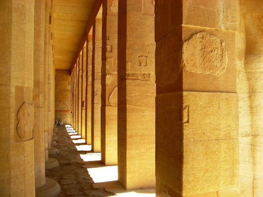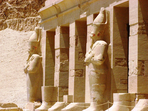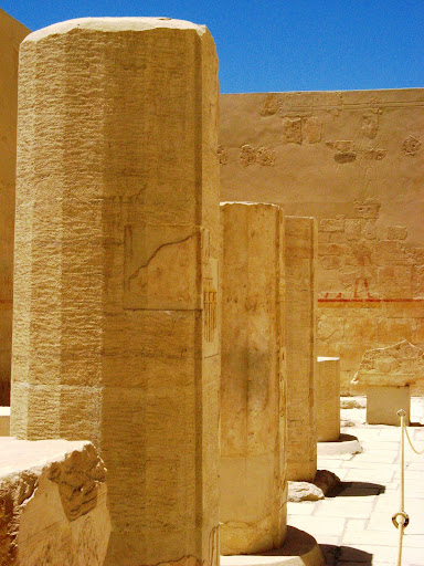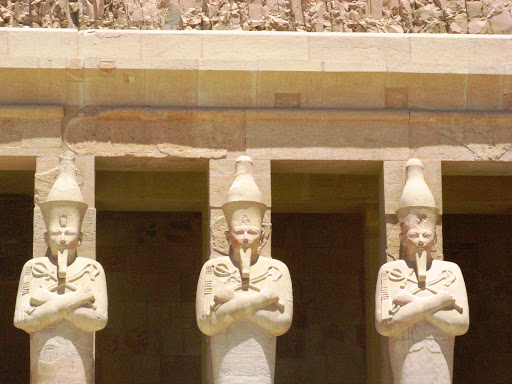 再細看這座古蹟, 整座女王廟都刻滿了淺浮雕, 訴說着女王的生平事跡。然而由於哈特謝普蘇特實際上是從小時候的圖特摩斯三世手中奪去大權, 因此圖特摩斯三世對她非常痛恨。 當圖特摩斯三世成為法老後, 他將哈特謝普蘇特的名字從所有建築物中刪去, 換上自己和父親圖特摩斯二世的樣子。埃及女王跟武則天也真相似, 所不同的是武則天在身後仍受到某程度的尊重, 不似哈特謝普蘇特被後人唾棄。