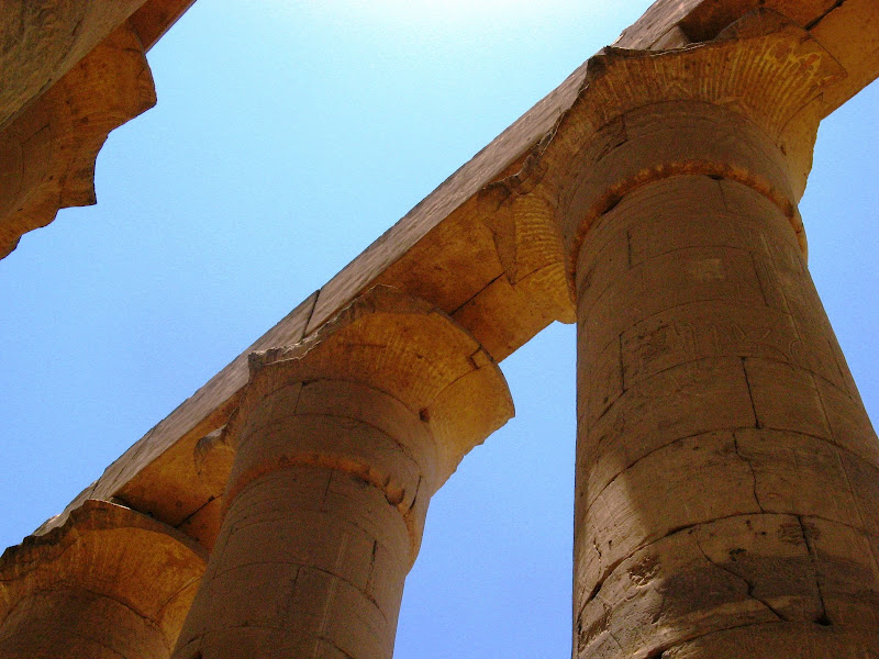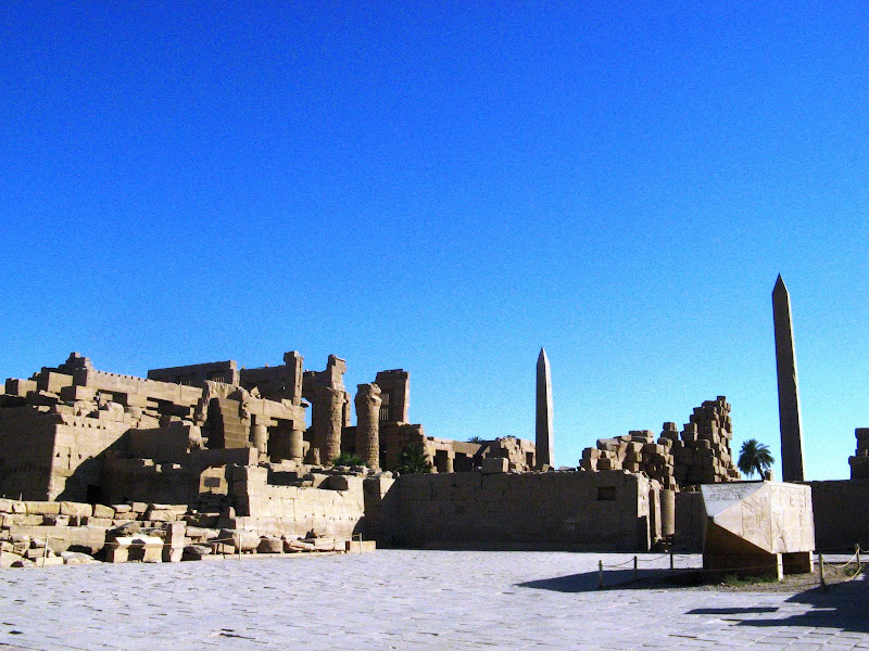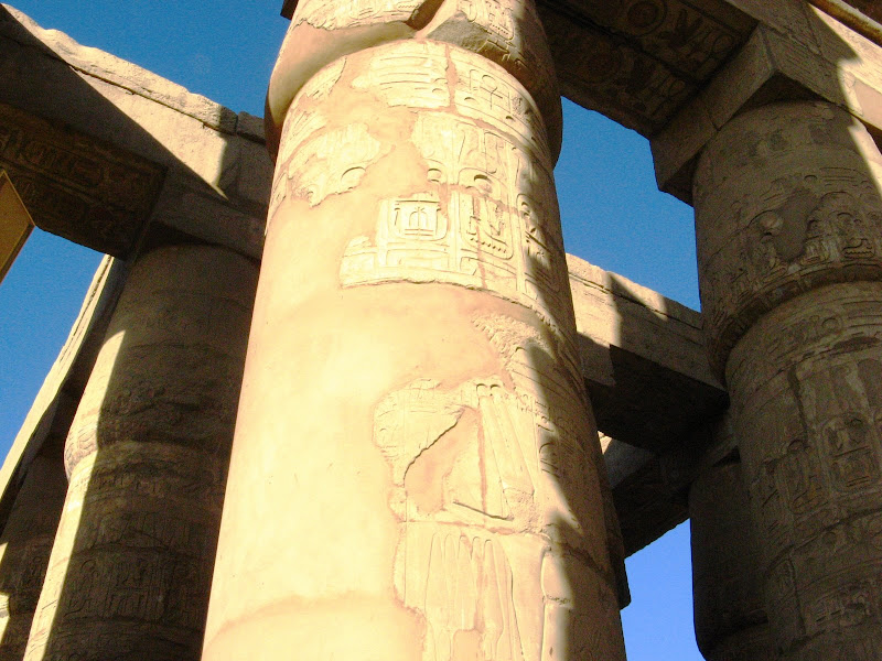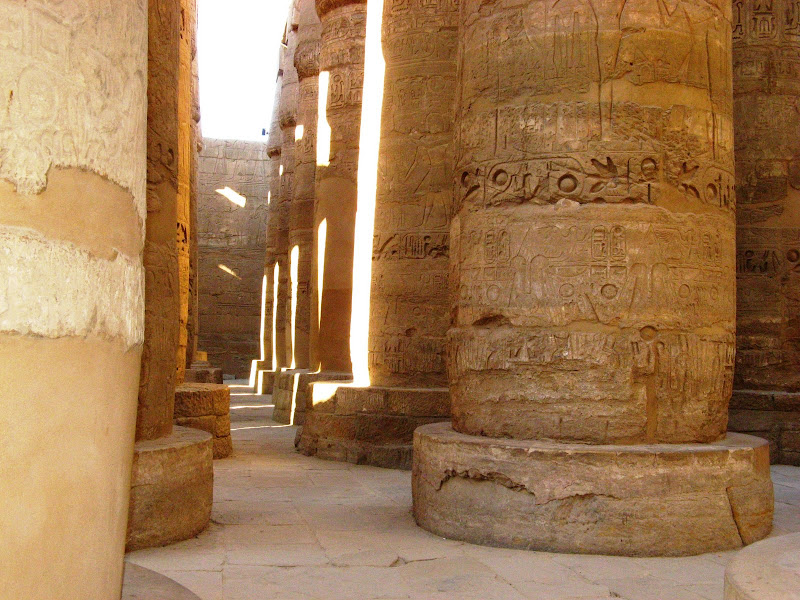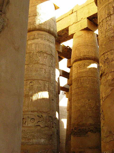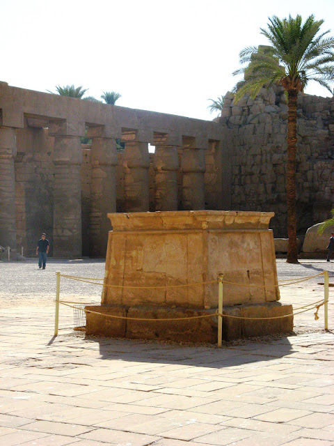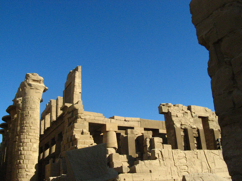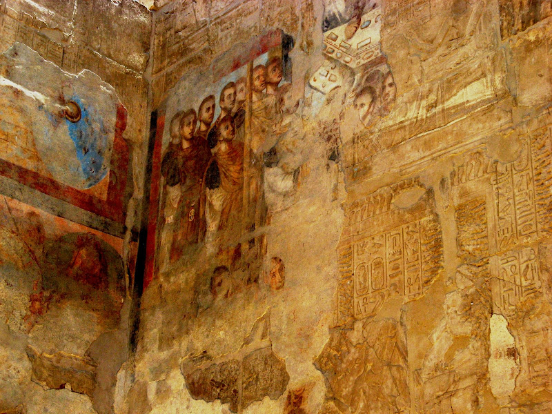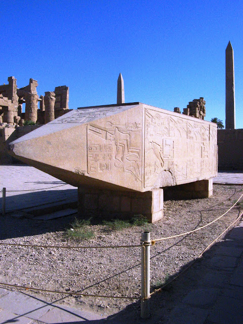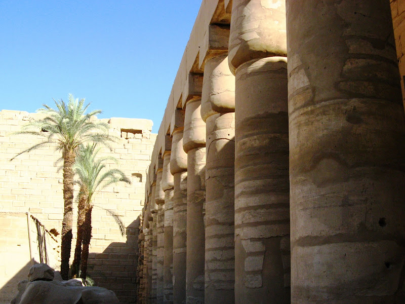 樂蜀神廟為拉美西斯二世所建。 不錯這位法老在打敗了希泰族(Hittites)人後, 為表示對底比斯的守護神阿蒙(Ammom)、慕特(Mut)和可斯(Khons)的尊敬而建了這神殿。 一年一度的迎神慶典也是在這裡舉行。拉美西斯二世對外不斷征戰擴張, 對內大興土木的結果, 自然是國庫空虛, 兵疲民乏。 強盛的第十九王朝亦由此走向衰落。 看來拉美西斯二世和漢武帝、唐玄宗、乾隆也真難兄難弟呢。