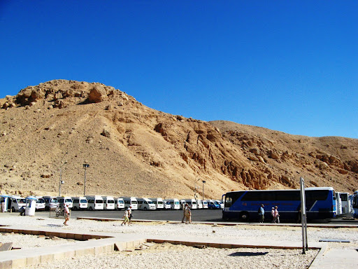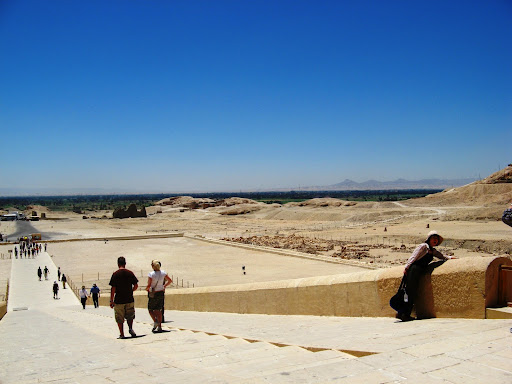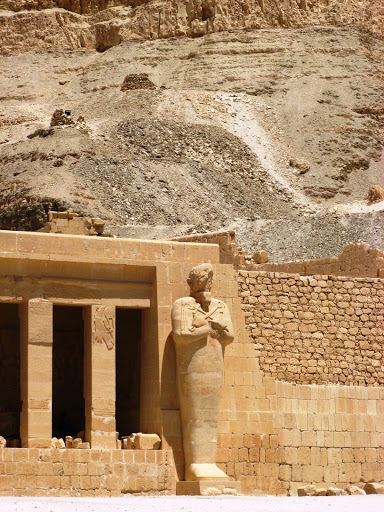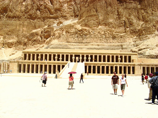 離開帝王谷, 我們到了女王廟。 這裡是埃及武則天哈特謝普蘇特的墓葬建築群。她的名字意為“最受尊敬的”, 她亦是法老圖特摩斯一世之女,圖特摩斯二世的異母妹與妻子,圖特摩斯三世的繼母及姑姑‧‧‧‧‧‧多複雜的亂倫啊!!