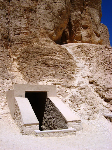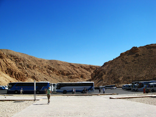 穿過遊客中心, 乘車循着過去葬禮隊伍的行進路線參觀數個陵墓, 包括拉美西斯四世和圖特摩斯三世的陵墓。其中圖特摩斯三世的陵墓是整個帝王谷已知海拔最高的陵墓, 我們要先走上一條長長的鐵梯才能抵達墓園的入口。令人驚嘆建造者的苦心是, 從入口進入陵墓後, 又要沿一條陡峭的甬道向下深入地底十多米才到達墓室。陵墓結構很簡單, 內部裝飾的壁畫以一種超現代的書法式幾何型圖案表現出來, 特別而且不可思議地流露出一種愚弄人的感覺‧‧‧‧‧‧
