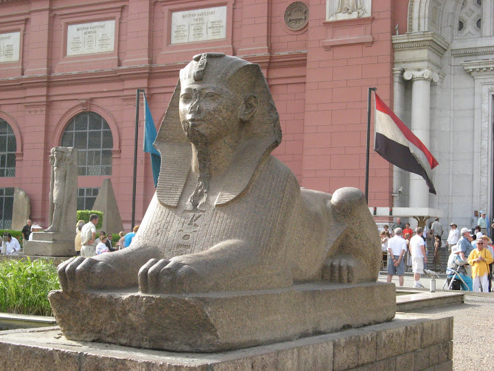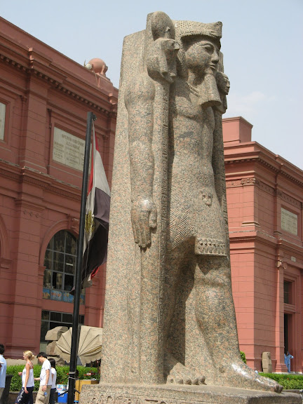 參觀金字塔後, 旅程亦已接近尾聲。最後一天到了埃及博物館參觀, 這裡有很多價值連城的文物, 最著名的當然是圖坦卡門的陪葬品,是用純金鑄造的面具。可惜館內不准拍照, 只好在門外拍一些石像。