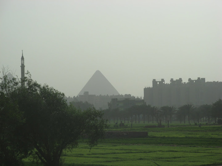 回程路上仍可看到大金字塔的踪影。雖然現實的大金字塔比電影中描繪的小一點, 但在其他平房相比仍然有種鶴立鷄群的風采。