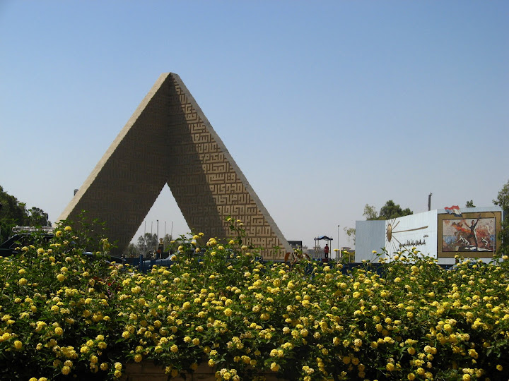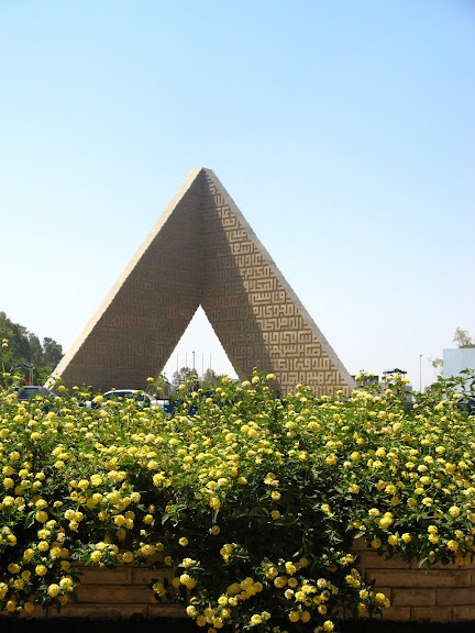 回酒店的途中還經過一座仿金字塔設計,簡單而莊嚴,為了紀念遇刺身亡的前總統沙達及為國捐軀的埃及士兵而建的無名英雄紀念碑: